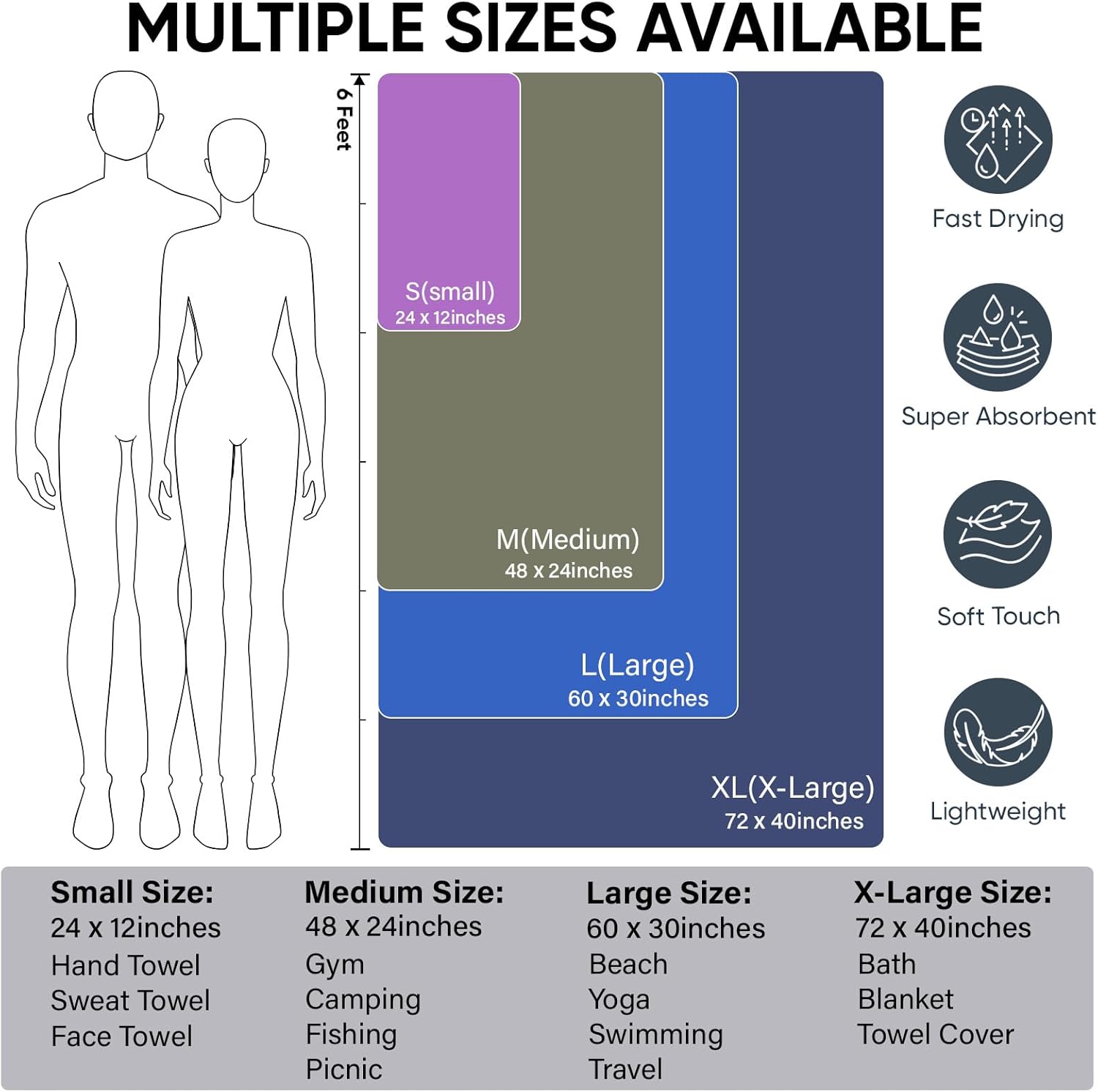 - Versatile: Available in multiple sizes, these workout towels are perfect for bath, sports, yoga, swimming, camping, hiking, or as a beach towel; Their durable, lightweight, and quick-drying design makes them ideal for any adventure or everyday use; Whether at the beach or home exercise, these versatile towels effortlessly meet all your needs.