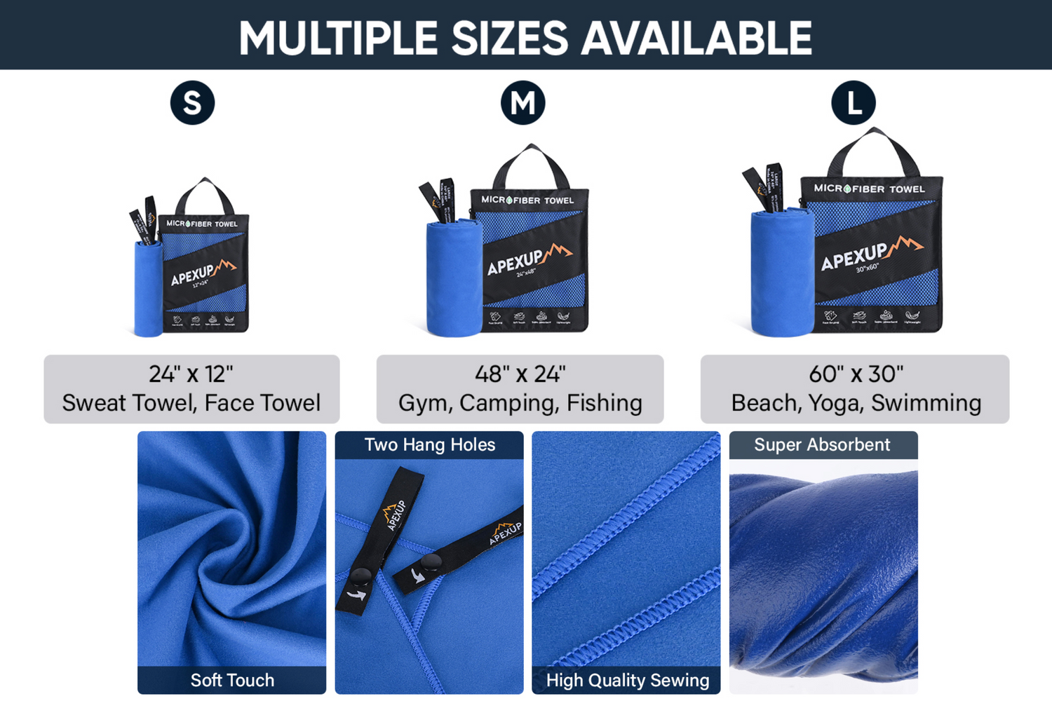 - Lightweight and Soft: APEXUP Gym towel is made from high-quality microfiber materials for a gentle feel on your skin; Whether you're drying off after a shower or relaxing at the beach, its smooth and soft microfiber texture provides exceptional comfort; Moreover, its lightweight and compact design allows for easy storage in backpacks or suitcases.