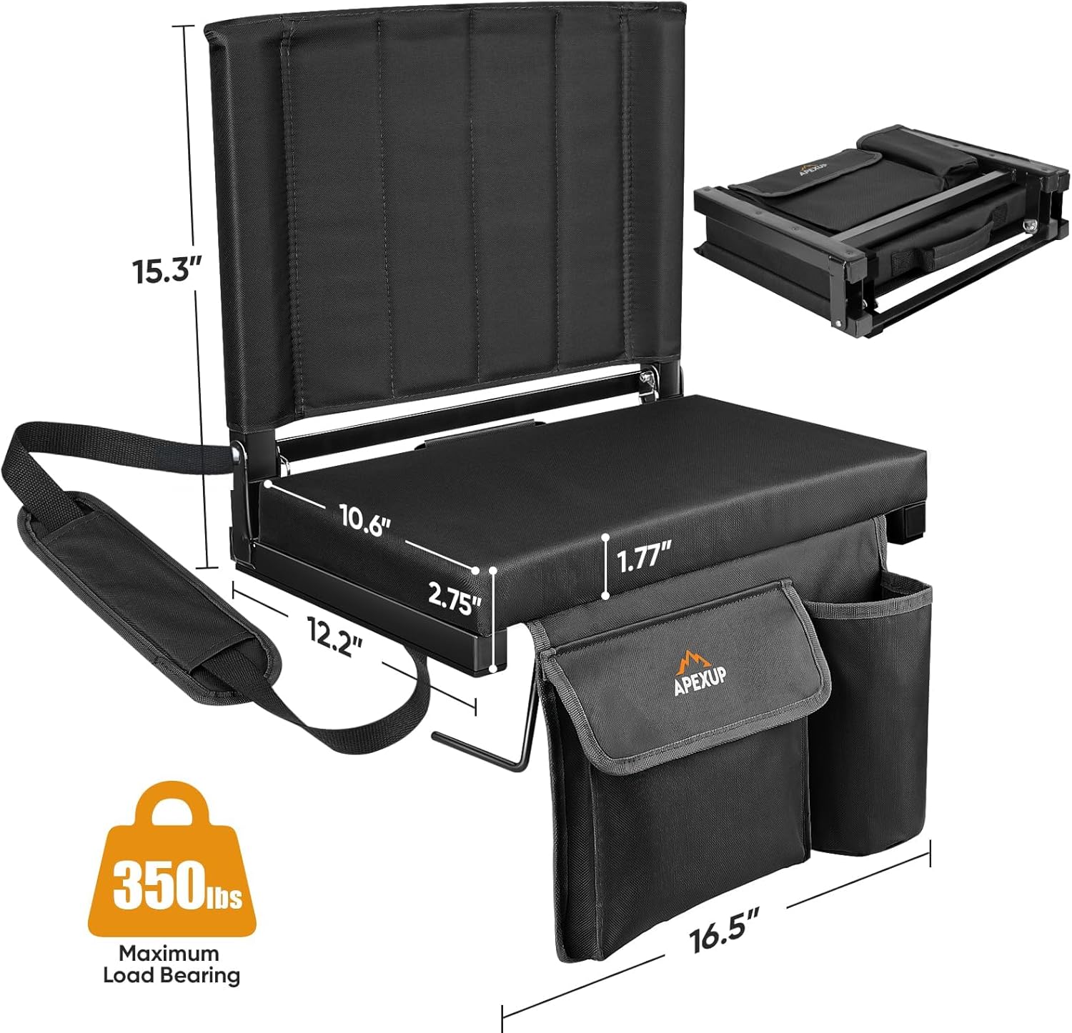 - SAFE, DURABLE & STURDY: Safety is the most important factor in a bleacher seat cushion. APEXUP chose the extra thick and strong frame to achieve excellent weight-bearing capacity and safety to support up to 350 lbs. The full-wrap cushion design prevents cracking, while the well-designed stitching makes the entire seat look stylish and elegant.